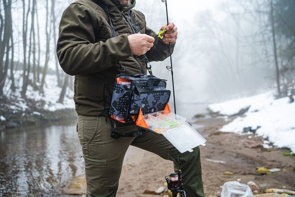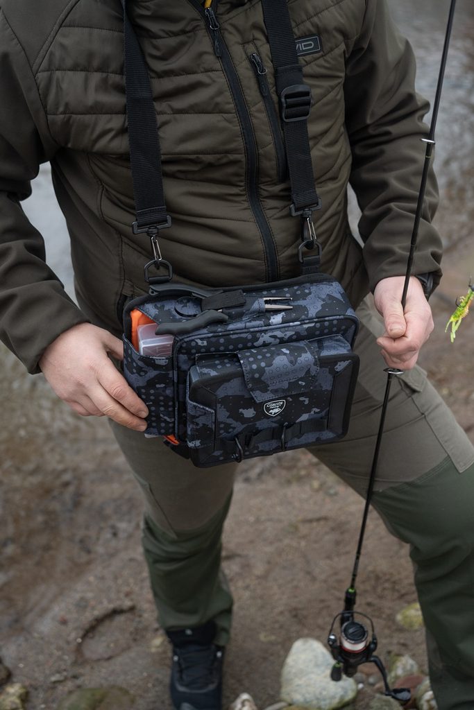 Trollingová taška, ktorú môžete použiť ako ľadvinku s výklopnou platformou, na ktorej si môžete pohodlne vyberať nástrahy.