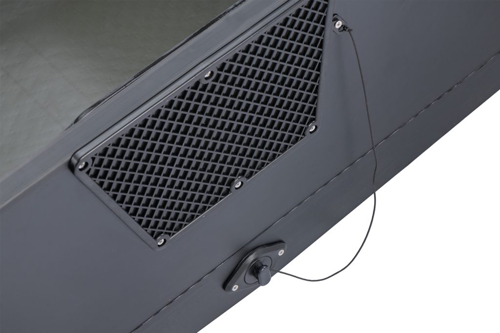 Nafukovacia podlaha so zdvojenou nášľapnou vrstvou je takmer nezničiteľná a jej zelená farba skvelo ladí so zafarbením člna aj čiernymi veslami a ostatnými doplnkami. Každý čln je vybavený radom upínacích pásikov na suchý zips v prednej časti aj na zrkadle. Nájdeme tu aj masívny upínací popruh na príslušenstvo v strednej časti.