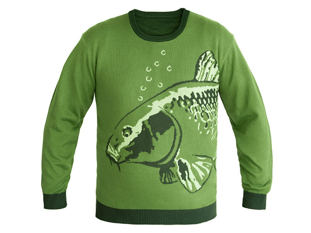 Sveter je vyhotovený v tmavo zelenej farbe a jeho poznávacím znakom je veľká grafika kapra nachádzajúca sa na prednej i zadnej strane svetra.