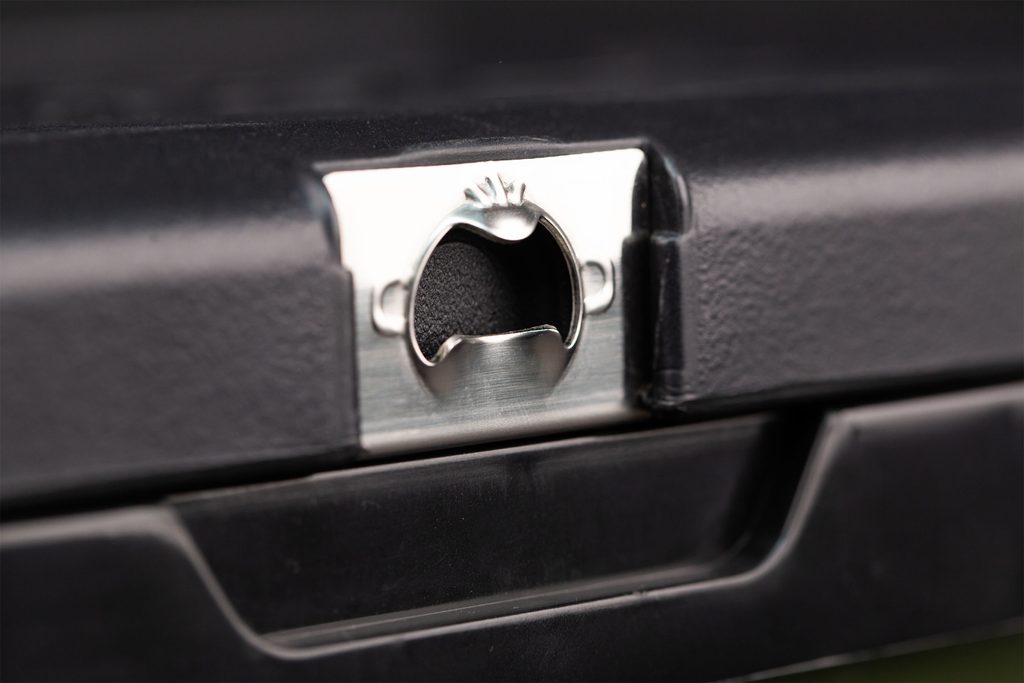 Dvojitá stena izolovaná a utesnená pomocou robustných bezpečnostných uzamykacích spôn. Dodávajú sa aj s dvoma mraziacimi blokmi Coolabox. Tie sa zasunú do priehradky vo veku, aby pomohli udržať teplotu. K dispozícii je aj praktický otvárač na fľaše, ktorý vám pomôže otvoriť vychladené pivá.