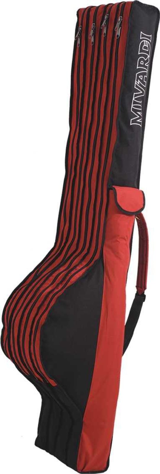 Luxusní obal se čtyřmi komorami na pruty s navijáky, vyrobený ze 100% nepromokavého materiálu B-POL620D. Je vybaven 2 polstrovanými popruhy na ramena, boční kapsou na příslušenství a vysoce odolnými zipy se značkovými táhly MIVARDI.