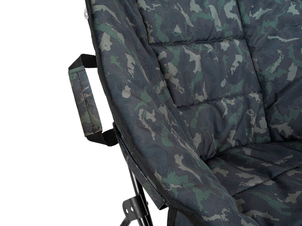 O maximálne pohodlie sa stará matrac vyplnený mäkkou výplňou vo vnútri aj po celom obvode. Povrch tvorí odolná 600D látka, potlačená originálnou patentovanou BANX kamuflážou, ktorá kreslu dodáva jedinečný vizuál a dlhú životnosť.