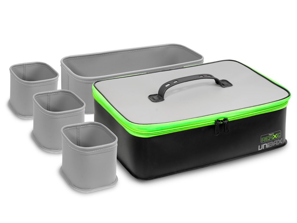 Sériu praktických feedrových tašiek dopĺňa multifunkčný model Delphin REAXE UniBAX 4v1. Vďaka všestrannému využitiu a vodoodolnému EVA materiálu predstavuje ideálne riešenie pre usporiadanie návnad a nástrah či transport rôzneho feedrového príslušenstva.